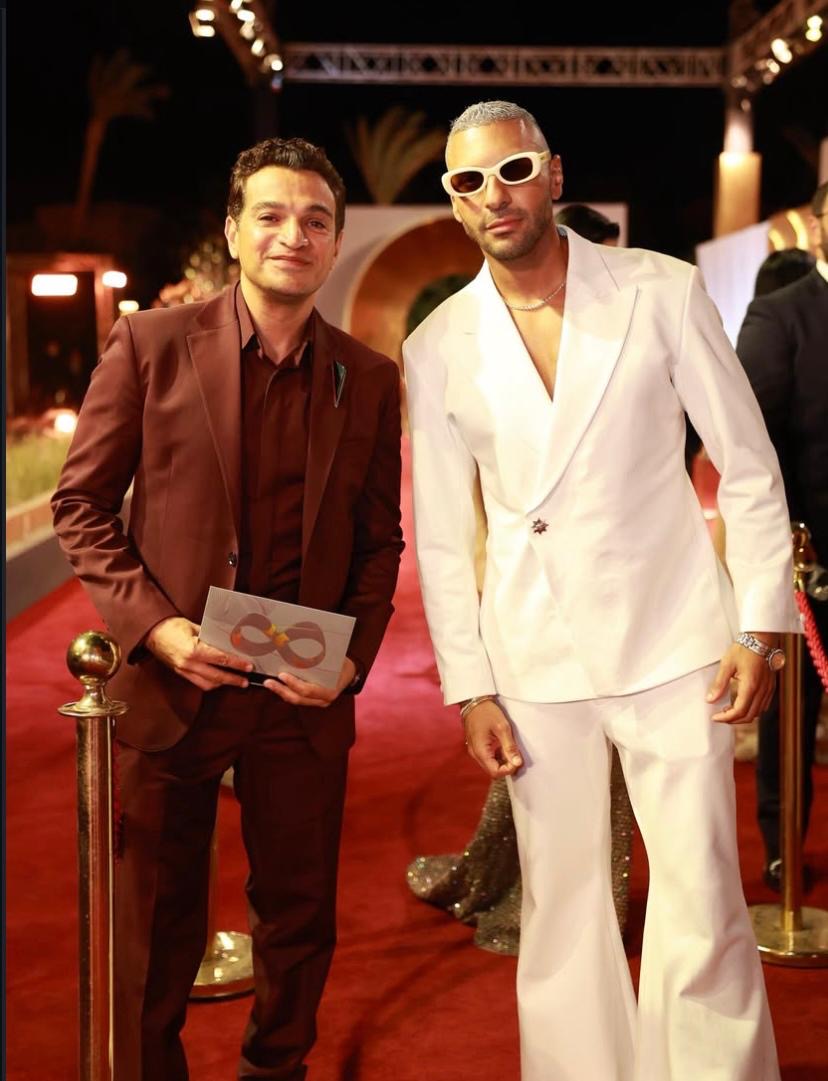 فيما اختار الممثل بدلة أنيقة باللون الأبيض تميّزت بتصميمها الفني العصري الذي جمع بين الطابع الكلاسيكي ولمسات الابتكار، ونسّقها مع قميص بسيط أضفى توازنًا بين الأناقة والجرأة، إلى جانب حذاء بتصميم لافت أكمل طابع الإطلالة الاستعراضية المميزة له.