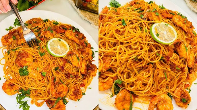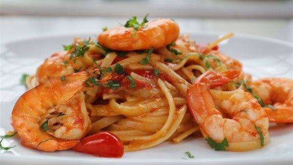 طريقة عمل مكرونة بالجمبري والزعتر الأخضر مثل المطاعم