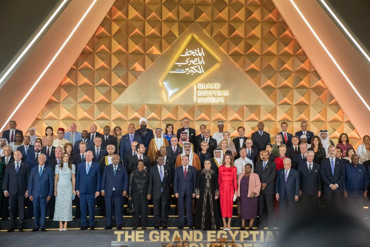 وقد قام سموه وكبار الحضور بجولة في أرجاء المتحف المصري الكبير، الذي يضم قاعات عرض متكاملة تجسّد عراقة الحضارة المصرية وإسهاماتها في مسيرة الإنسانية، واطلع سموه خلال الجولة على عدد من المعروضات الأثرية والمقتنيات الفريدة التي توثق مراحل مختلفة من التاريخ المصري القديم، إلى جانب قطع نادرة تعكس استمرار الإبداع الإنساني عبر العصور، حيث أكد سموه أن العروض التي تضمنها الحفل المميز لافتتاح المتحف المصري الكبير عكست عراقة الحضارة المصرية التي ستظل رمزاً ملهماً للتفاعل بين الثقافات، ودليلاً على قدرة الإنسان على البناء والإبداع، مشيراً سموه إلى أن ما قدمته مصر عبر تاريخها الطويل من منجزات علمية وفكرية وفنية شكّل أساساً متيناً للحضارة العربية والإسلامية، وأسهم في إثراء التراث الإنساني العالم