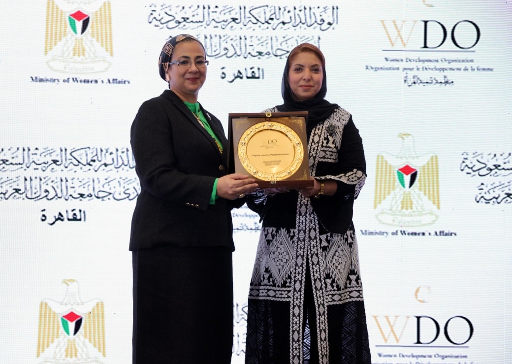 وتم خلال الحفل تكريم المستشارة أمل عمار بدرع الشكر من الدكتورة "أفنان الشعيبي" المديرة التنفيذية لمنظمة تنمية المرأة تقديرًا لجهودها في دعم المرأة الفلسطينية.