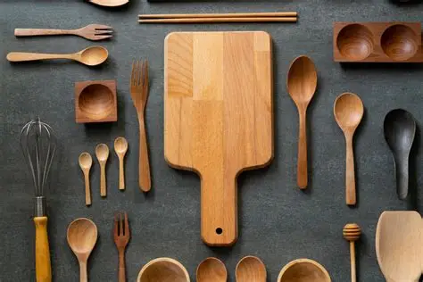 ومنها الأواني غير اللاصقة، أواني الحديد الزهر، كل ما هو خشبي سواء ملاعق أو أطباق، الكريستال، وكذلك أواني النحاس، البرنز، والمطلية بالذهب، بالإضافة إلى الأدوات ذات التصميمات المطبوعة أو المرسومة يدويًا، وأخيرًا السكاكين الحادة وبعض الاواني الخزفية أو الفخارية.