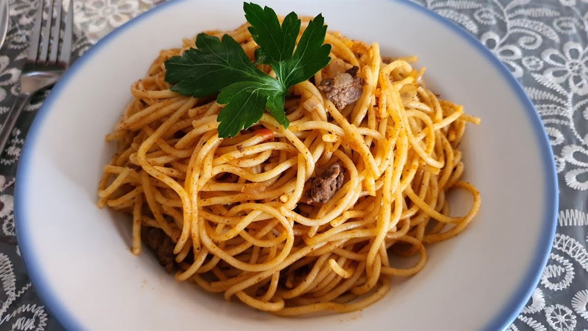 خطوات تحضير المكرونة الإسباجيتي باللحم المفروم والبارميزان