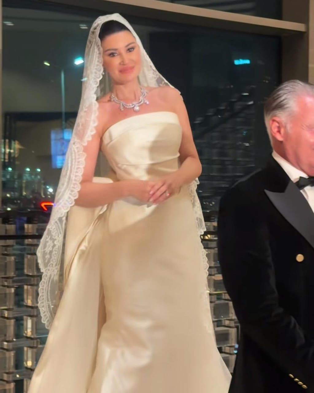 بينما بدت العروس أروى جودة في غاية الجمال بفستان أبيض بسيط التصميم، اعتمدت فيه على الخطوط الكلاسيكية الناعمة مع لمسات أنثوية راقية أبرزت ملامحها الطبيعية دون مبالغة.