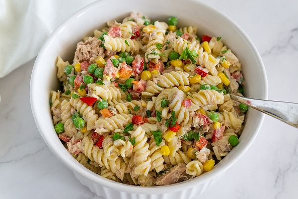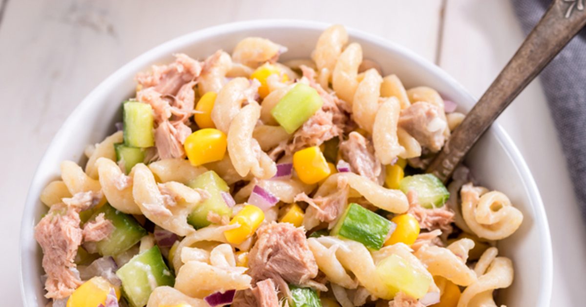 صحية ولذيذة .. طريقة عمل سلطة التونة بالمكرونة والبصل الأخضر