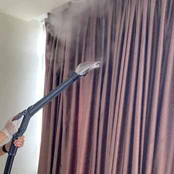 للتنظيف العميق أو إزالة البقع، فلديكِ خياران، الأول التنظيف بالبخار ويُعد الخيار الأمثل لتنظيف الستائر وهي معلقة لأنه يفكك الأوساخ ويقضي على الجراثيم وعث الغبار دون الحاجة لفكها.