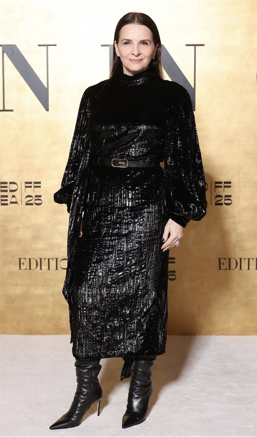 تألقت النجمة كيرستن دانست بالأسود مع فستان ميدي من الكريب الأسود، أما حواف الفستان فعمدت بها إلى تكسيرات وثنيات أضافت جمالًا للإطلالة مع حذاء المول الأسود الشفاف والمُزي بتطريز مع فيونكة وكعب صغير، أما عن شعرها فكان بسيط للغاية حيث اكتفت برفعه على شكل شينيون، وأكملت اللوك بأحمر شفاه زاهي.