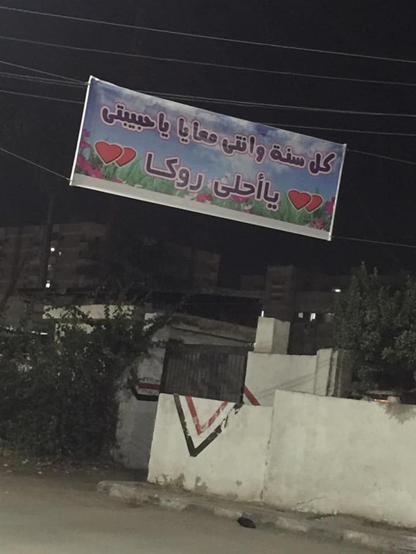 إسلام عجمي، ورقية كامل، زوجان أكملا أول أمس عامهما الأول كزوجين، لكنه جاء بشكل مختلف، حيث حرص الزوج على تعليق لافتات بشوارع محافظة كفر الشيخ للتعبير عن حبه لزوجته، دون على اللافتات عبارة واحدة وهي " كل سنة وانتي معايا يا أحلى حبيبتي يا أحلى روكا" لتنقلب لحظات الحزن الى أعوام من السعادة والفرح لتقرر الزوجة الاتصال بزوجها للتعبير هي الأخرى عن حبها له:" كنت عاوز أقول لها ان مهما الحياة ضغطتني هتفضلي أحلى حاجة في حياتي، فكرت إزاي أسعدها في اليوم ده بشكل مختلف، فروحت المطبعة طبعت اللافتات وعلقتها في الشوارع اللي هي هتعدي منها، هكذا يحكي الزوج قصته.