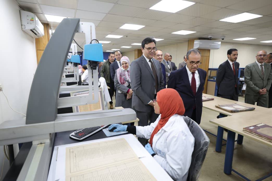 جاء ذلك بحضور الدكتور أسامة طلعت رئيس مجلس إدارة الهيئة العامة لدار الكتب والوثائق القومية، حيث تفقد الوزيران غرف الاطلاع على الوثائق، ومركز الرقمنة، ومعامل الترميم، واطلعا على الإمكانات الفنية والتقنية المستخدمة في حفظ وترميم الوثائق والمستندات الرسمية.