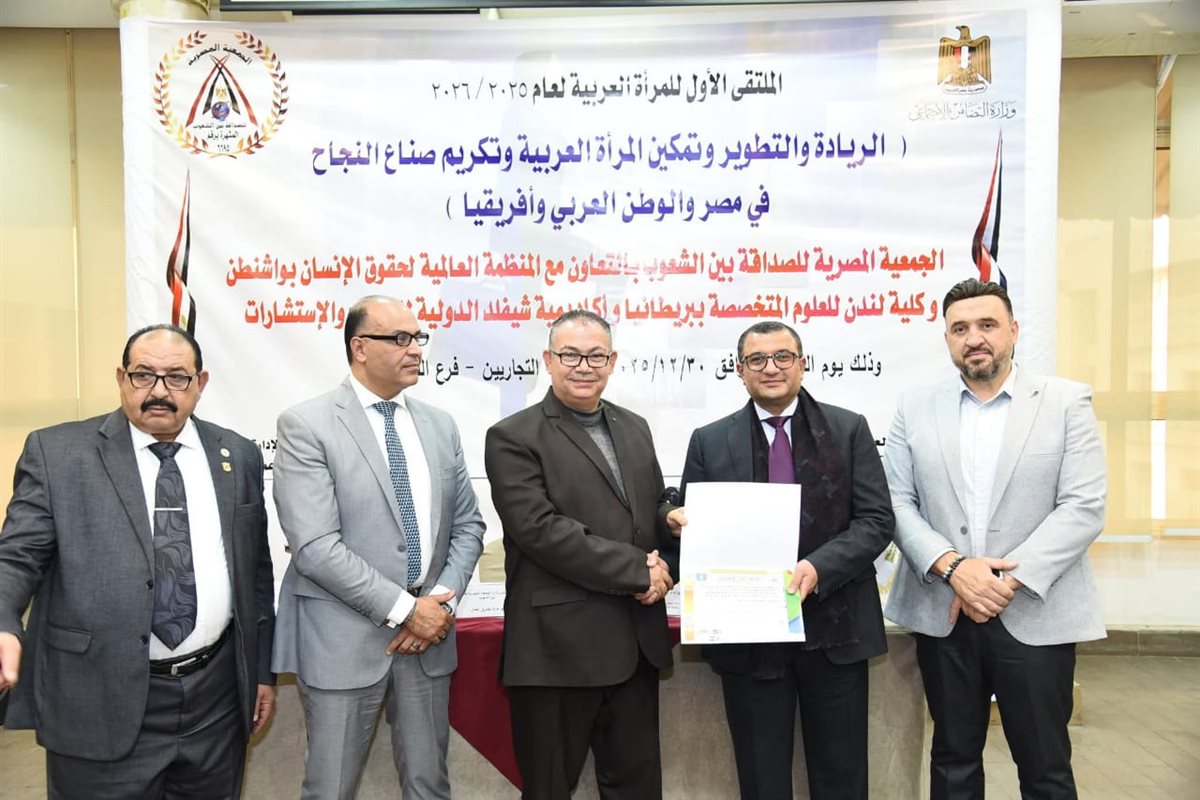 نظّمت الجمعية المصرية للصداقة بين الشعوب، برئاسة اللواء.د طارق عمار والأمين العام للجمعية الإعلامية . د تقوى اسحق الملتقى الأول للمرأة العربية لعام 2025/2026، تحت عنوان«الريادة والتطوير وتمكين المرأة وتكريم صُنّاع النجاح في مصر والوطن العربي»، وذلك بحضور رفيع المستوى من القيادات التنفيذية والقضائية، ونخبة من الشخصيات العامة، والخبراء، والإعلاميين.