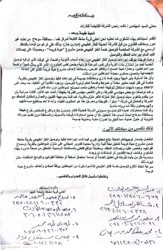 بلاغ يتهم شركة تابعة لـ«مودرن غاز» بتعطيل مشروع توصيل الغاز ويطالبون وزارة البترول بالتدخل (مستند)