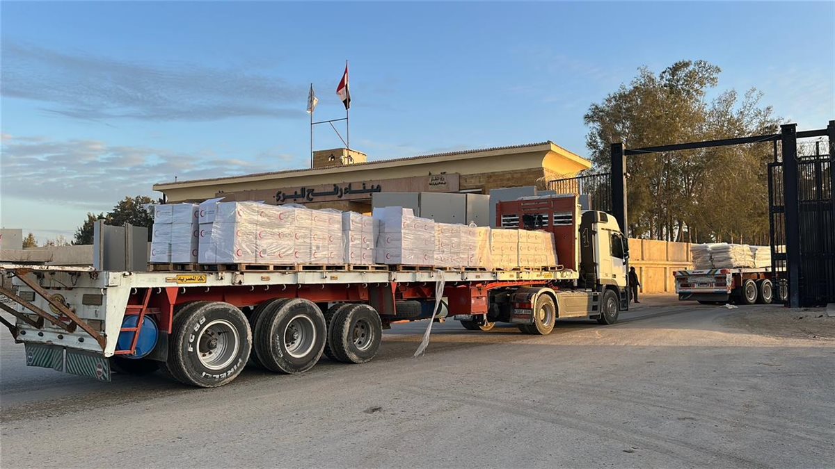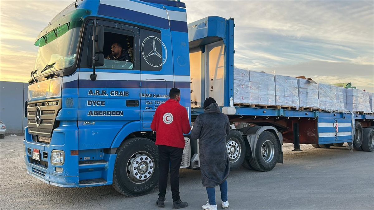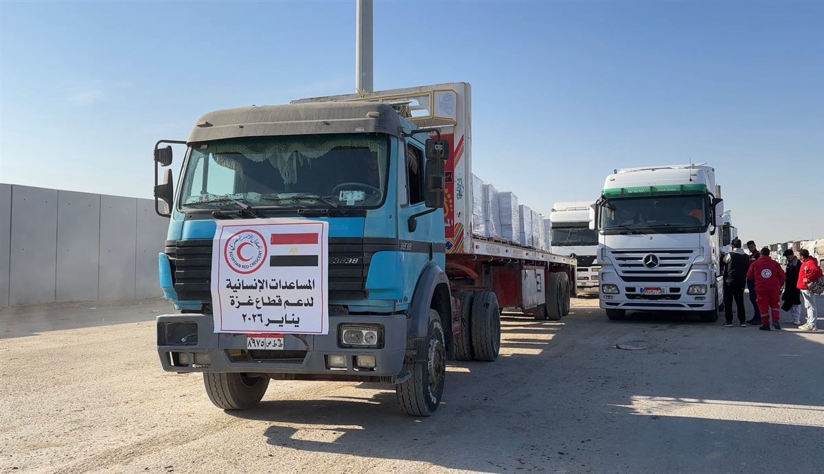 الهلال الأحمر المصري يرسل مساعدات غذائية وملابس شتوية عبر قافلة «زاد العزة» 112 إلى غزة