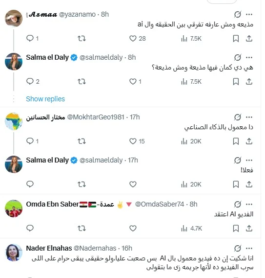 وأكّد عدد كبير من المتابعين والخبراء ذلك في ردودهم على التدوينات المتداولة، معتبرين أن الهدف من نشر الفيديو هو تضليل الجمهور وصناعة شائعات جديدة حول حياة الفنانة الخاصة.
