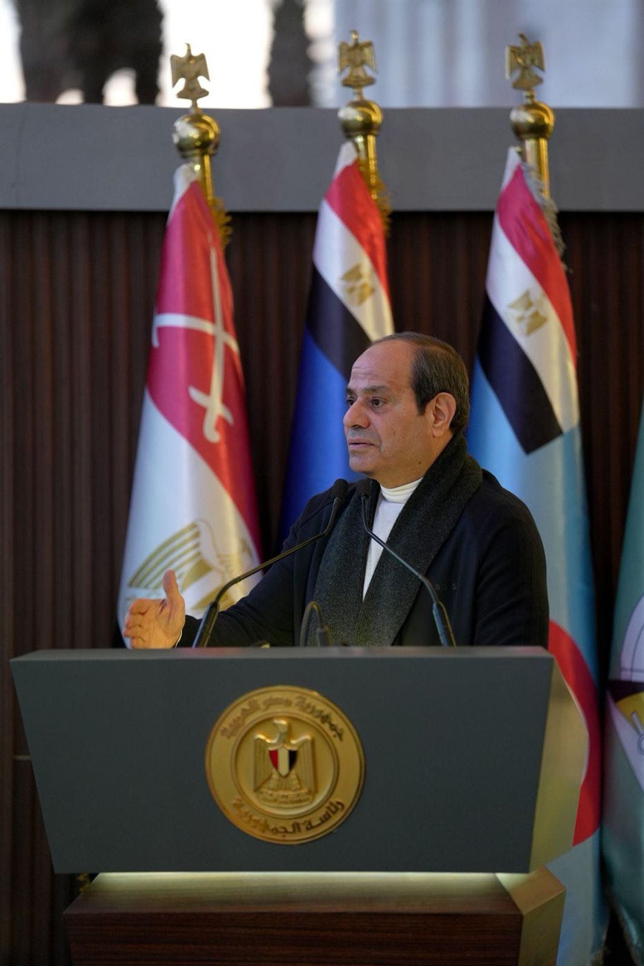 "أرحب بكم، وأوجه لكم جميعاً كل التحية والاحترام وأشير إلى اعجابي بكم، أنتم أمل مصر، شباب وشابات مصر هم الأمل… الذي نتمنى من الله أن نعدهم ونجهزهم حتى يتحملوا أمانة الحفاظ على الدولة، تمنياتي لكم ودعائي لله سبحانه وتعالى أن يكلل كل جهودنا بالتوفيق. أرحب بالدورات الجديدة، سواء طلبة وطالبات الكليات العسكرية، أو الدورات المدنية من وزارات الري، المالية، الأوقاف، النقل، والخارجية، ومن المعلمين، ومن القضاة في الأيام القليلة القادمة، وأتمنى أن تكون فترة تواجدكم بالأكاديمية فترة بناء وتطوير في كل المجالات.