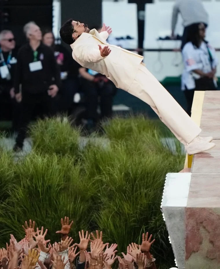 في المقابل، حمل عرض باد باني رسائل رمزية واضحة، حيث قدّم فقرته بالكامل باللغة الإسبانية، وهي اللغة الأساسية في جميع أعماله الغنائية، مع استثناءات محدودة لتعاونات سابقة مع فنانين ناطقين بالإنجليزية.