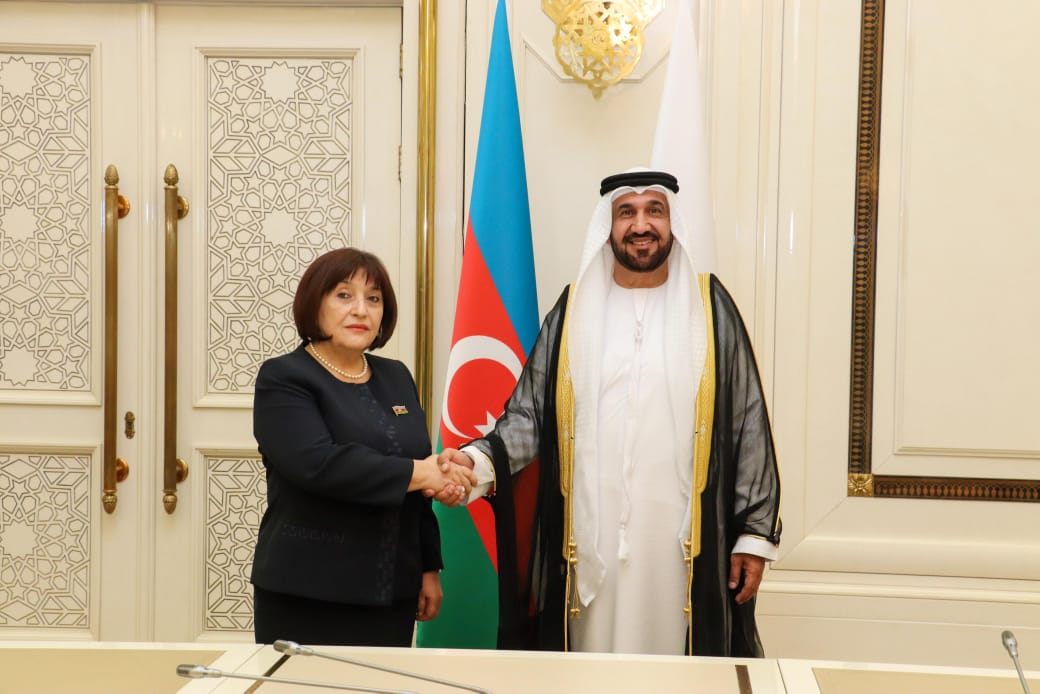 جاء ذلك خلال لقاء معالي محمد بن أحمد اليماحي رئيس البرلمان العربي مع معالي السيدة صاحبة غفاروفا في العاصمة باكو، وذلك في إطار الزيارة الرسمية لوفد البرلمان العربي برئاسة "اليماحي" إلى جمهورية أذربيجان تلبية للدعوة الرسمية من معالي السيدة صاحبة غفاروفا.