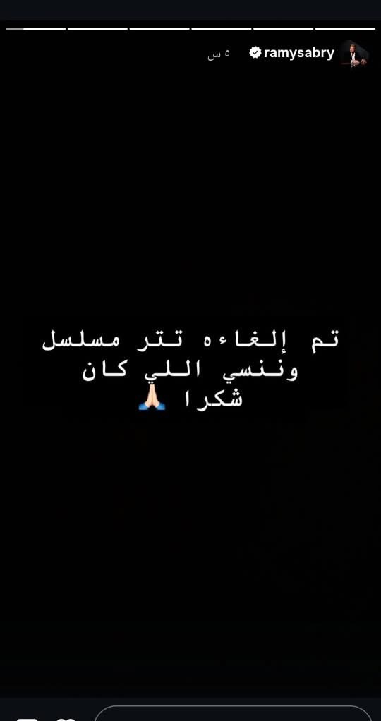 وجاء هذا الإعلان المفاجئ من خلال منشور مقتضب شاركه رامي صبري عبر خاصية «الاستوري» على حسابه الرسمي بموقع إنستجرام، اكتفى فيه بالقول: «تم إلغاء تتر مسلسل وننسى اللي كان.. شكرًا»، دون الكشف عن أي تفاصيل أو أسباب وراء اتخاذ هذا القرار، لكن رواد منصات التواصل الاجتماعي بدأوا يتكهنوا حول السبب، وهو إحدى الخلافات مع نجمة المسلسل ياسمين عبد العزيز.