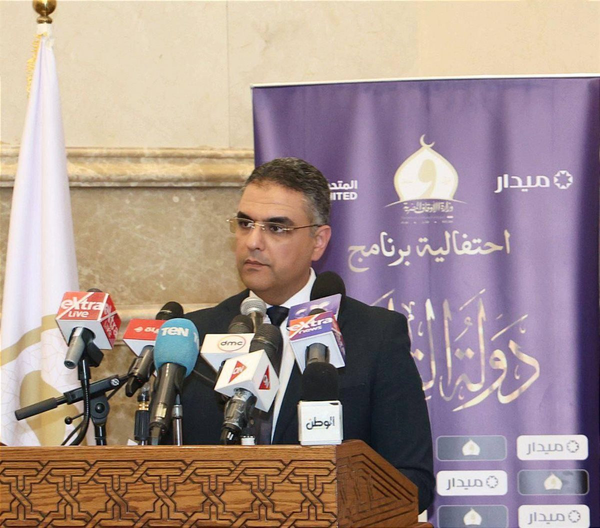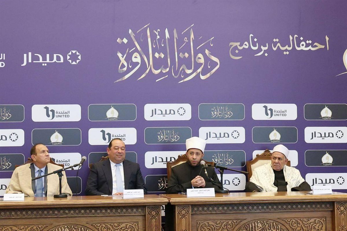 عقدت وزارة الأوقاف، بالتعاون مع المتحدة للخدمات الإعلامية، احتفالية لعرض تفاصيل حفل ختام برنامج «دولة التلاوة»، في موسمه الأول، برعاية شركة ميدار للاستثمار والتنمية العمرانية، بمركز مصر الثقافي الإسلامي في مسجد مصر الكبير بالعاصمة الجديدة؛ وذلك بحضور فضيلة الشيخ حسن عبد النبي عراقي - وكيل لجنة مراجعة المصحف بالأزهر الشريف، وفضيلة الدكتور أحمد نعينع - شيخ عموم المقارئ المصرية، والمهندس أيمن القوصي - العضو المنتدب، الرئيس التنفيذي لشركة ميدار للاستثمار والتنمية العمرانية، ونخبة من أعضاء لجنة التحكيم في المسابقة.