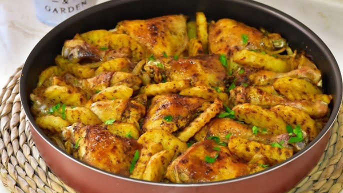 طريقة عمل صينية الفراخ بالبصل المكرمل والبطاطس
