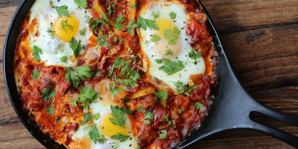 يكسر البيض في أماكن متفرقة من الشكشوكة، ثم تخفض النار ويغطى ويترك لينضج على حرارة هادئة او بالفرن لو امكن.