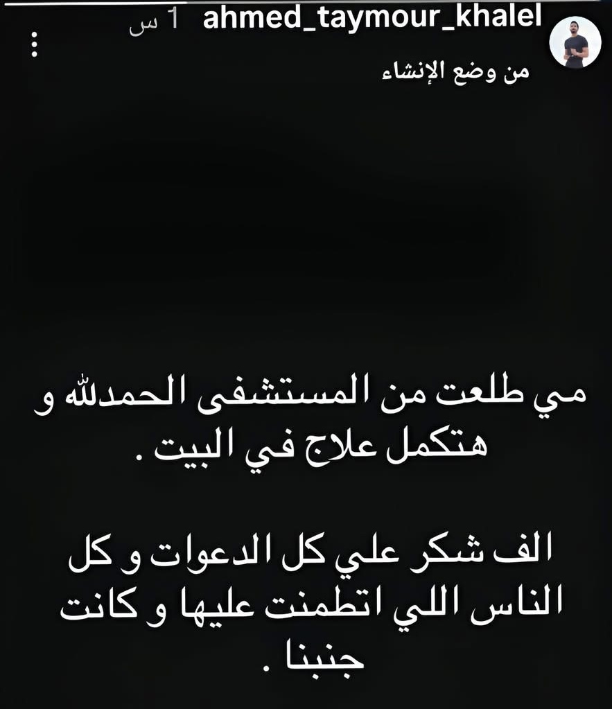 وكتب أحمد تيمور زوج الفنانة مي عز الدين عبر منشور له: “مي طلعت من المستشفى الحمد لله وهتكمل علاج في البيت”، مطمئنًا الجمهور على حالتها الصحية بعد الأيام الماضية التي أثارت قلق محبيها.
