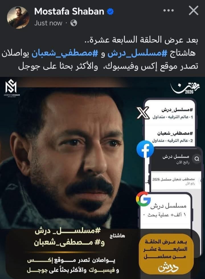 هذا الموقف يعكس حجم الاهتمام الكبير والمتابعة الدقيقة التي يوليها الجمهور لمتابعة النجوم مثل مصطفى شعبان ومسلسلاتهم في شهر رمضان، ويظهر كيف أصبحت التريندات مؤشراً مهماً لنجاح الأعمال الدرامية.