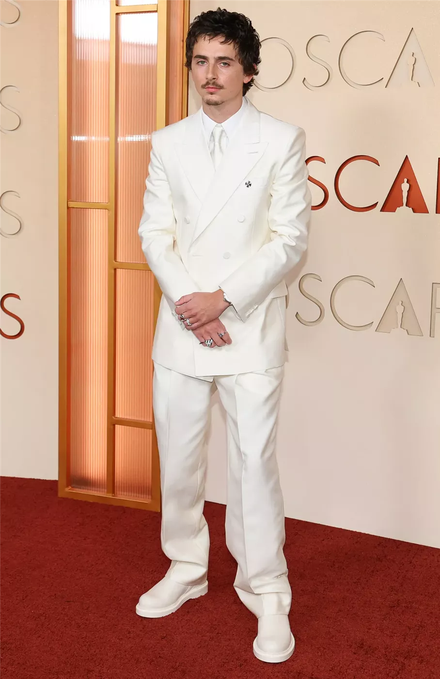 إلى جانب الجدل المرتبط بتصريحاته، أثارت إطلالة شالاميه البيضاء الكاملة ردود فعل متباينة. فقد ظهر ببدلة وربطة عنق باللون الأبيض مع نظارة شمسية سوداء كبيرة، ما دفع كثيرين إلى التعليق بسخرية على منصة X.