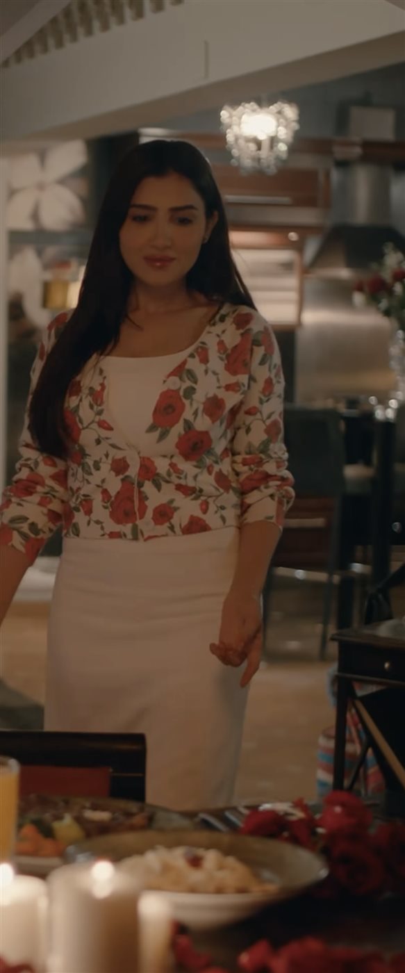 أما في المشاهد اليومية، فقد اختارت مي عمر أسلوبًا عمليًا وأنيقًا في الوقت ذاته، مثل تنسيق قميص دنيم مع تنورة مزينة بطبعات الورود، لتجسد الروح العصرية القريبة من الواقع، وتوضح قدرة الأزياء على التعبير عن تفاصيل الحياة اليومية للشخصية بأسلوب سلس وطبيعي.