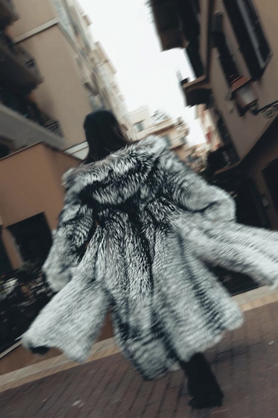 - معطف الفرو الطويل بالرمادي والأسود: أضاف طابعًا دراميًا فاخرًا، مهيمنًا على الإطلالة ومواكبًا لصيحات الموضة العالمية.