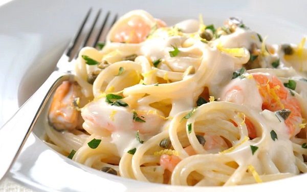 خطوات تحضير مكرونة السي فود بالصوص الأبيض