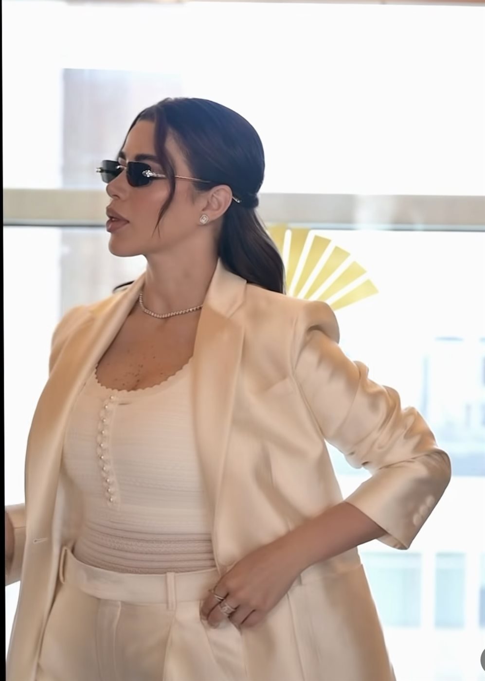 يارا السكري تتألق بإطلالة مونوكروم أنيقة.. بدلة بيج تعكس البساطة والفخامة