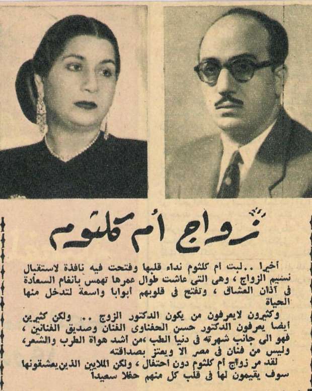 وكشف الكاتب مصطفى أمين في عمود الصحفي "فكرة" عام 1988، تفاصيل زواج أم كلثوم بـ"الحفناوي"، وكتب: "تحدثت مع أم كلثوم في مسألة زواجها من الدكتور حسن الحفناوي وتأكدت منها أن القران عقد فعلا، سألتها عن رأيها في نشر الخبر في أخبار اليوم فقالت إنها لا تريد أن ينشر الخبر إلا في شهر سبتمبر القادم".